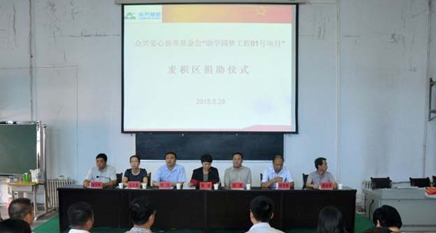 2015年8月28日,由眾興菌業(yè)時任董事長陶軍發(fā)起成立的“天水眾興愛心慈善基金會”,在天水市二中舉行了“助學(xué)圓夢工程01號項目”首批資助款336000元的發(fā)放儀式。